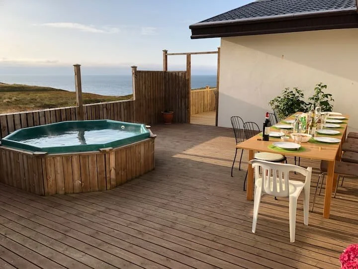 Boasting beautiful views of the sea and the mountains. We have a hot tub available for soothing soaks, and the coastline and mountains are within reach (5 min walk) for exploring and reflection.